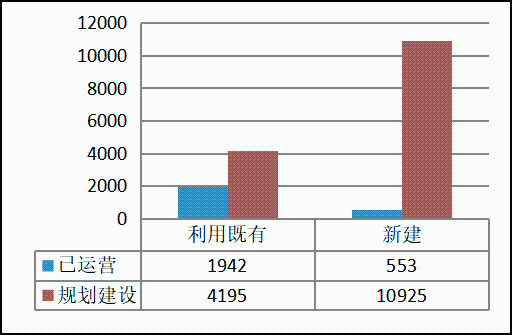 自相關文件發布以來,各省市積極推進市域(郊)鐵路建設,取得了一定的成績。據有關資料統計,截至2019年,我國市域(郊)鐵路已運營線路里程約2495公里,其中利用既有線路1942公里,新建線路553公里。擬規劃線路里程約15120公里,其中利用既有線路4195公里,新建線路10925公里。已運營和規劃建設市域(郊)鐵路里程見圖1所示。