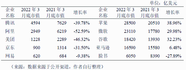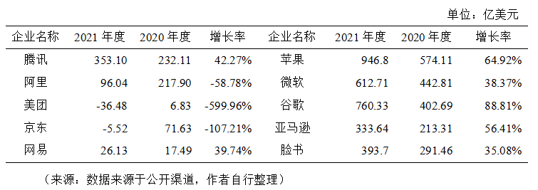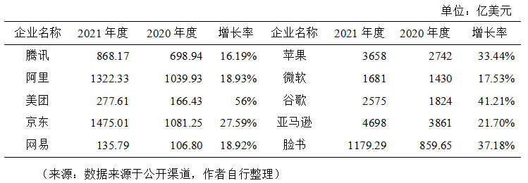 近年來我國數(shù)字經(jīng)濟規(guī)模整體呈現(xiàn)持續(xù)擴大趨勢,2005年我國數(shù)字經(jīng)濟規(guī)模為2.6萬億元,2021年擴張至45.5萬億元,在GDP中占比由14.2%提升至39.8%,市場規(guī)模位居全球第二,已經(jīng)成為名副其實的數(shù)字經(jīng)濟“大國”。然而,當前面臨的數(shù)字經(jīng)濟增速放緩、頭部平臺企業(yè)市值下滑、營收不高、利潤率下滑、新增獨角獸企業(yè)數(shù)量下降等現(xiàn)象暴露出我國數(shù)字經(jīng)濟發(fā)展動能有所減弱,需引起高度重視。 01 數(shù)字經(jīng)濟創(chuàng)新發(fā)展動能減弱的幾個表現(xiàn) (一)數(shù)字經(jīng)濟增速出現(xiàn)放緩。近年來,在全球地緣局勢緊張、疫情反復及強監(jiān)管的影響下,我國數(shù)字經(jīng)濟的增長勢頭出現(xiàn)了放緩。數(shù)據(jù)表明,2014年~2018年間,我國數(shù)字經(jīng)濟的平均增速接近20%,2019年~2021年間,數(shù)字經(jīng)濟的平均增速為13.8%,尤其是2020年,增速僅為9.6%,較上一年下滑5.9個百分點。2021年同比名義增長16.2%,但與2017~2018年間連續(xù)維持20%以上的名義增速,2002年~2018年間實現(xiàn)了208倍的歷史跨越相比,仍存在下滑趨勢。 圖1 2014-2021年我國數(shù)字經(jīng)濟增速 來源:數(shù)據(jù)來源于公開渠道,作者自行整理 (二)頭部數(shù)字平臺企業(yè)市值下滑嚴重。截至2022年3月底,我國平臺企業(yè)中市值排名前5位的依次是騰訊、阿里、美團、京東和網(wǎng)易,其中騰訊市值4594億美元,同比下降39.78%,阿里市值2949億美元,同比下降52.59%,美團市值1228億美元,同比下降46.32%,下滑幅度均超過三分之一。美國平臺企業(yè)中市值排名前5位的依次是蘋果、微軟、谷歌、亞馬遜和臉書,其中蘋果市值28500億美元,同比上漲38.96%,微軟市值23110億美元,同比上漲29.98%,谷歌市值18420億美元,同比上漲32.23%,上漲幅度均超過四分之一。過去的一年間,中美互聯(lián)網(wǎng)平臺企業(yè)的市值差距越來越大。 表1 中美前5大數(shù)字平臺企業(yè)市值對比 (三)頭部數(shù)字平臺企業(yè)營收整體不高。營業(yè)收入方面,2021年度我國平臺企業(yè)營收實現(xiàn)增長。其中京東營業(yè)收入1475.01億美元,同比增長27.59%,阿里營業(yè)收入1322.33億美元,同比增長18.93%,騰訊營業(yè)收入868.17億美元,同比增長16.19%;美國平臺企業(yè)中亞馬遜營業(yè)收入4698億美元,同比增長21.7%,蘋果營業(yè)收入3658億美元,同比增長33.44%,谷歌營業(yè)收入2575億美元,同比增長41.21%。我國京東、阿里的營業(yè)收入均不足亞馬遜的三分之一,且我國前5大平臺企業(yè)差距較大,美團和網(wǎng)易的營業(yè)收入僅為277.61億美元和135.79億美元,我國前5大平臺企業(yè)的平均營業(yè)收入不足美國前5大平臺企業(yè)的30%。 表2 中美前5大數(shù)字平臺企業(yè)營業(yè)收入對比 (四)頭部數(shù)字平臺企業(yè)利潤出現(xiàn)持續(xù)下滑。利潤方面,2021年度我國平臺企業(yè)利潤下滑嚴重,其中美團和京東出現(xiàn)了凈虧損。具體來看,美團虧損36.48億美元,同比下降599.96%,京東虧損5.52億美元,同比下降107.21%,阿里凈利潤為96.04億美元,同比下降58.78%;美國平臺企業(yè)中蘋果凈利潤946.8億美元,同比增長64.92%,谷歌凈利潤760.33億美元,同比增長88.81%,微軟凈利潤612.71億美元,同比增長38.37%,亞馬遜和臉書的凈利潤均超過300億美元。我國前5大平臺企業(yè)的平均凈利潤不足美國前5大平臺企業(yè)的15%。 表3 中美前5大數(shù)字平臺企業(yè)利潤對比 (五)頭部數(shù)字平臺企業(yè)營收結構側重消費者業(yè)務。收入結構方面,我國前5大平臺企業(yè)更依賴電商、游戲、外賣等面向消費者的業(yè)務,企業(yè)營收仍集中在國內(nèi)市場,美國前5大平臺企業(yè)更依賴智能云服務、硬件服務和電商,面向更廣闊的全球市場。 表4 中美前5大平臺企業(yè)收入結構對比 (六)獨角獸企業(yè)數(shù)量增長明顯減速。無論是獨角獸企業(yè)的新增數(shù)量還是準獨角獸企業(yè)的形成數(shù)量,我國都滯后于美國甚至印度。2018年以來的中美貿(mào)易摩擦以及2021年初以來的平臺經(jīng)濟“強監(jiān)管”政策都加速了新增獨角獸公司的數(shù)量的全球分化。根據(jù)最新榜單,中國的新興獨角獸公司有27家,落后于印度的32家,2021年中國新增獨角獸企業(yè)僅3家,明顯落后于美國的132家。在全球數(shù)字經(jīng)濟的競爭格局中“不進則退”。 圖2 2010~2021年中美新增獨角獸企業(yè)對比 來源:數(shù)據(jù)來源于公開渠道,作者自行整理 02 正確認識和把握數(shù)字經(jīng)濟的幾個關系 (一)在持續(xù)發(fā)展中實現(xiàn)安全。面對安全和發(fā)展,要把發(fā)展擺在首位,是第一要務,通過發(fā)展來解決安全問題。從國際競爭的角度來說,數(shù)字經(jīng)濟發(fā)展放緩就意味著國家的安全隱患增加。涉及個人隱私和國家信息安全的問題,可以利用技術發(fā)展來尋求解決的辦法,比如區(qū)塊鏈就在智能合約中發(fā)揮著重要作用,區(qū)塊鏈技術把可能出現(xiàn)的造假都從技術上堵住了,又如保護個人隱私問題,有了隱私計算技術就可以實現(xiàn)對數(shù)據(jù)“可用而不可見”,既保護個人隱私又讓數(shù)據(jù)得以流通和使用。故而,當經(jīng)濟和技術發(fā)展起來后,可以利用技術來解決安全問題。此外,在考慮數(shù)據(jù)安全和規(guī)范時,仍