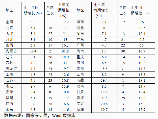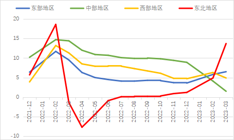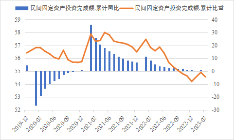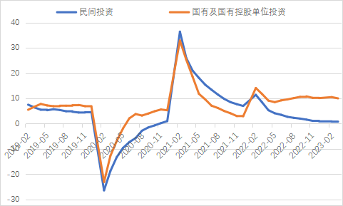 2023年一季度生產需求明顯改善,市場預期加快好轉,經濟企穩勢頭開始顯現。固定資產投資穩定增長為一季度經濟平穩運行提供了重要支撐,各地都將穩投資作為重要工作,有效應對外部不確定性因素沖擊。隨著供需循環進一步暢通,疊加前期政策效應等多方面積極因素,擴大有效投資仍有潛力和空間。下階段,應聚焦重點產業、重要產業鏈、民生領域等精準發力,多渠道籌措項目建設資金,更好發揮投資對于調結構、促轉型的帶動作用,為經濟高質量發展打下堅實基礎。 一、固定資產投資整體運行情況 1.整體投資保持平穩增長態勢 2023年1-3月,我國固定資產投資(不含農戶,下同)10782億元,同比增長5.1%,較國內生產總值增速高了0.6個百分點,與2022年全年增速持平,固定資產投資增速仍保持高位。從投資構成看,一季度建安工程、設備工器具購置、其他費用分別增長4.1%、4.2%、8.2%。建安工程、設備工器具購置保持較快增長,人工、材料、施工機具使用以及設備購置等費用增速加快,反映了在穩投資系列政策推動下,新上項目較多、新上項目中設備購置量增多、企業更新改造力度加大。 圖1 全國固定資產投資增速(%) 數據來源:國家統計局 2.民間投資意愿和能力仍待恢復 2023年1-3月,民間固定資產投資為58532億元,同比增長0.6%,較1-2月低了0.2個百分點,低于投資整體增速4.5個百分點,仍處于低位運行狀態。從季度波動看,民間固定資產投資的增速已由2022年第一季度的8.4%持續下滑,下滑幅度較大。民間固定資產投資占比進一步萎縮,跌至2011年以來的次低點,僅為54.56%。 圖2 民間投資增速及占比(%) 數據來源:國家統計局,Wind數據庫 近年來,受疫情反復、成本上升、內需收縮等因素影響,民間投資動力和能力普遍偏弱,民營企業面臨較嚴重的需求收縮。2022年開始,國有及國有控股單位投資增速超過民間投資增速,且差距逐漸拉大。2023年1-3月,國有及國有控股單位同比增長10%,較民間投資增速高了9.4個百分點。1-2月,內資企業中的國有企業、集體企業和股份合作企業固定資產投資分別同比增長17.8%、20.5%和17.1%。 圖3 民間投資、國有及國有控股單位投資增速(%) 數據來源:國家統計局,Wind數據庫 3.基建投資加力提效,制造業投資結構持續優化 2023年1-3月,制造業投資保持較快增長,基建投資增速有所提升,房地產投資增速仍為負值,但降幅明顯收窄。基礎設施投資在增加政策性開發性金融工具額度、用好專項債等融資支持政策以及各地區各部門積極貫徹落實穩增長系列政策推動下,效果逐步顯現,一季度基礎設施投資同比增長8.8%,高于全部投資5.7個百分點,是大類投資中增長最快的領域?;ㄍ顿Y呈現結構性特征,資金投向更加聚焦。一季度水利管理業投資增長10.3%,公共設施管理業投資增長7.7%,道路運輸業投資增長8.5%,鐵路運輸業投資增長17.6%?;ǖ耐七M速度與資金的到位情況呈強相關性,從政策支持領域看,資金重點流向了市政及產業園區基礎設施、社會事業、交通基礎設施、保障性安居工程、農林水利、生態環保、倉儲物流基礎設施等領域,聚焦于基礎設施“補短板”以及新基建“提質量”,確保了資金精準灌溉。 表1 1-3月我國各行業固定資產投資情況 2023年一季度,國內需求逐步擴大,經營主體預期好轉,制造業投資同比增長7%,比整體投資高1.9個百分點。其中,高技術制造業投資同比增長15.2%,對制造業投資拉動作用明顯,表明制造業轉型升級態勢持續。制造業改造升級潛力巨大,高技術制造業投資明顯快于全部投資。3月,制造業采購經理指數(PMI)為51.9%,比上月下降0.7個百分點,連續三個月位于景氣區間。隨著國內經濟循環加快恢復,制造業生產和市場需求穩步回升,生產指數和新訂單指數分別為54.6%和53.6%,位于近期較高景氣水平,裝備制造業、高技術制造業PMI分別為53%、51.2%,制造業繼續保持擴張態勢。從企業規模看,大、中、小型企業PMI分別為53.6%、50.3%和50.4%,低于上月0.1、1.7和0.8個百分點,均高于臨界點,大型企業恢復發展動能表現強勁。 圖4:制造業PMI指數(%) 數據來源:國家統計局,Wind數據庫 2023年受需求走弱影響,房地產開發投資增速持續放緩,2023年1-3月,我國房地產開發投資、住宅開發投資分別同比下降5.8%、4.1%。房地產開發投資占固定資產投資完成額的比重也降至24.2%,較上年同期下降2.3個百分點。房屋施工面積、房屋新開工面積等先行指標均出現明顯下滑,分別同比下降5.2%、19.2%。1-3月,房地產開發景氣指數均位于100以下,且延續去年2月以來走低趨勢。 圖5 三大領域固定資產投資增速(累計同比,%) 數據來源:國家統計局,Wind數據庫 4.中部地區投資增速持續下降,東北地區領跑全國 從投資地域看,2023年1-3月東北地區投資連續10個月回升,增速領跑全國,同比大幅增長13.7%,較全國水平高了8.6個百分點。東部地區投資增速為6.5%,較1-2月提高0.7個百分點,投資開局良好。西部地區保持平穩較快增長態勢,同比增長4.9%。中部地區延續2022年2月以來的下降趨勢,投資增速繼續回落,僅同比增長1.5%??偟膩砜矗瑬|北和東部地區投資呈現較快增長,中部地區投資增速繼續回落。 圖6 分地區固定資產投資增速(累計同比,%) 數據來源:國家統計局,Wind數據庫 1-2月,31個省份中有19個省投資增速高于全國水平,其中西藏、內蒙古、寧夏、甘肅、新疆等5省實現兩位數增長,增速分別達59.4%、39.4%、20.8%、12.2%、10.7%,投資恢復動
