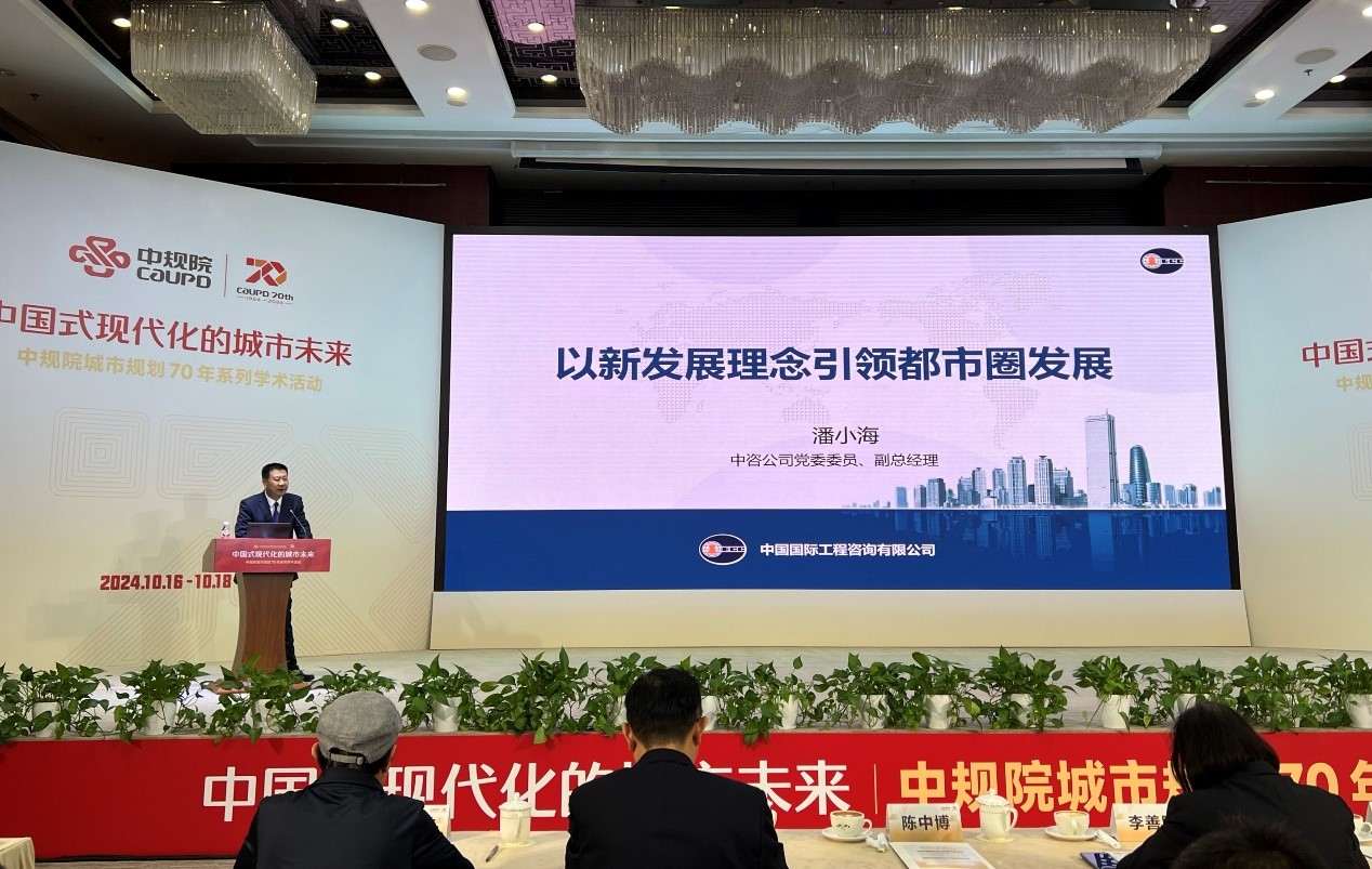 2024年10月16日,應中國城市規劃設計研究院(以下簡稱中規院)邀請,中咨公司黨委委員、副總經理潘小海代表公司參加“中國式現代化的城市未來——中規院城市規劃70年學術活動”,并圍繞會議主題“新型城鎮化與區域協同發展”,作題為“以新發展理念引領都市圈發展”的主旨演講。 潘小海指出,黨的二十大和黨的二十屆三中全會均對推進新型城鎮化作出重要部署,結合中國城鎮化發展的宏觀環境,都市圈是實現中國式現代化的戰略選擇,是參與國際合作競爭的重要基石,是經濟社會高質量發展的核心增長極。結合中咨公司對城鎮化的相關研究、規劃和評估經驗,潘小海對推進都市圈高質量發展提出“一條主線、兩輪驅動、三點發力”的建議?!?strong>一條主線”是面向中國式現代化的總體目標,堅持以新發展理念引領都市圈發展;“兩輪驅動”是以創新驅動塑造都市圈發展新動能,以綠色驅動優化城市發展新模式;“三點發力”是以發展規劃引導都市圈高質量發展,以系統建設支撐都市圈高質量發展,以產業協同助推都市圈高質量發展。 潘小海代表中咨公司對中規院成立70周年表示祝賀,并指出雙方專業優勢互補、合作空間廣闊,期待進一步深化合作,共同推進我國規劃事業邁上新臺階。 長期以來,中咨公司堅持全局性和前瞻性思維,深入貫徹落實國家宏觀戰略、區域發展戰略和產業發展戰略,發揮學科交叉、領域融合的綜合優勢,在戰略規劃、區域規劃、專項規劃等方面提供了大量成效顯著的咨詢服務,形成了涵蓋規劃編制、課題研究、規劃評估、中期評估和后評價等各環節的規劃咨詢服務鏈。 中咨公司首席規劃師、區域發展與規劃業務部主任郭建斌,社會事業業務部主任于強以及相關部門同志陪同參會。 | |||||