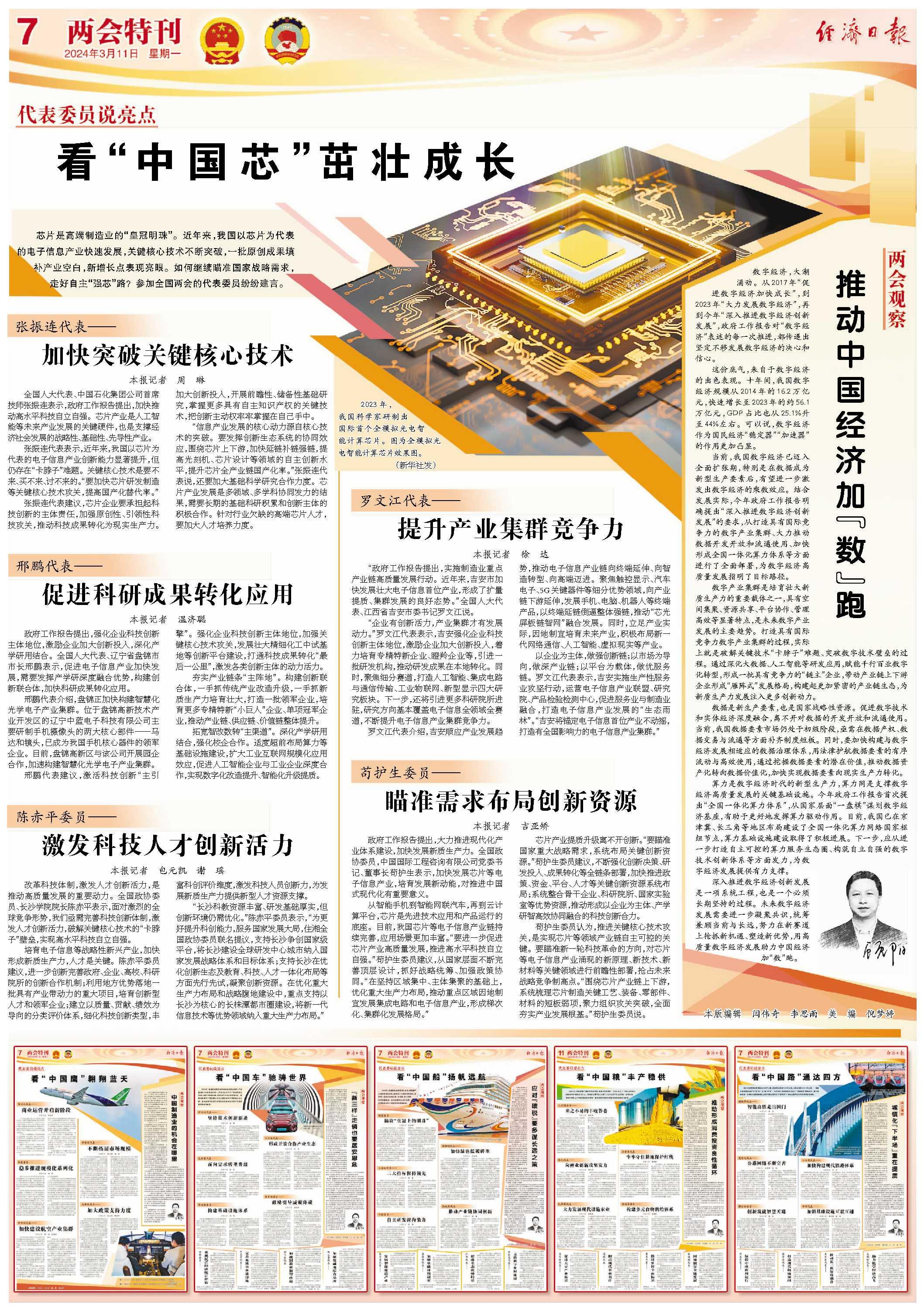 從智能手機到智能網聯汽車,再到云計算平臺,芯片是先進技術應用和產品運行的底座。目前,我國芯片等電子信息產業鏈持續完善,應用場景更加豐富。“要進一步促進芯片產業高質量發展,推進高水平科技自立自強。”茍護生委員建議,從國家層面不斷完善頂層設計,抓好戰略統籌、加強政策協同。“在堅持區域集中、主體集聚的基礎上,優化重大生產力布局,推動重點區域因地制宜發展集成電路和電子信息產業,形成梯次化、集群化發展格局。”