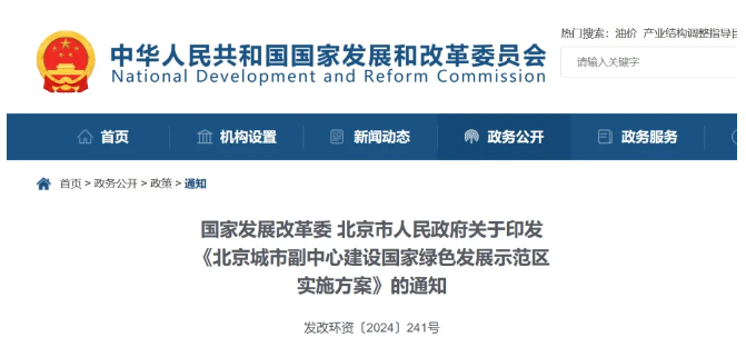 展首都綠色之翼 創(chuàng)全國(guó)示范之先 高質(zhì)量建設(shè)國(guó)家綠色發(fā)展示范區(qū) ——《北京城市副中心建設(shè)國(guó)家綠色發(fā)展示范區(qū)實(shí)施方案》解讀 張英健 木其堅(jiān) 近日,經(jīng)國(guó)務(wù)院同意,國(guó)家發(fā)展改革委、北京市人民政府聯(lián)合印發(fā)《北京城市副中心建設(shè)國(guó)家綠色發(fā)展示范區(qū)實(shí)施方案》(發(fā)改環(huán)資〔2024〕241號(hào),以下簡(jiǎn)稱《實(shí)施方案》),明確了北京城市副中心綠色高質(zhì)量發(fā)展、打造人與自然和諧共生樣板的工作路徑,為北京城市副中心有序承接中心城區(qū)非首都功能疏解、推進(jìn)首都城市功能重組和布局優(yōu)化,建設(shè)和諧、宜居、美麗的綠色發(fā)展高地繪制了總體藍(lán)圖,對(duì)于推動(dòng)北京“新兩翼”建設(shè)取得更大突破,促進(jìn)京津冀協(xié)同發(fā)展具有重要而深遠(yuǎn)的意義。 1、踐行習(xí)近平生態(tài)文明思想是北京城市副中心建設(shè)的根本遵循 規(guī)劃建設(shè)北京城市副中心,與雄安新區(qū)形成北京的“新兩翼”,是以習(xí)近平同志為核心的黨中央作出的重大決策部署,是千年大計(jì)、國(guó)家大事。早在2016年北京城市副中心研究部署規(guī)劃階段,習(xí)近平總書記就強(qiáng)調(diào),北京城市副中心建設(shè)要牢固樹立并貫徹落實(shí)創(chuàng)新、協(xié)調(diào)、綠色、開放、共享的發(fā)展理念,構(gòu)建藍(lán)綠交織、清新明亮、水城共融的生態(tài)城市布局,著力打造國(guó)際一流和諧宜居之都示范區(qū),建成綠色城市、森林城市、海綿城市、智慧城市。2021年8月,國(guó)務(wù)院印發(fā)《關(guān)于支持北京城市副中心高質(zhì)量發(fā)展的意見》,明確提出在北京城市副中心建設(shè)國(guó)家綠色發(fā)展示范區(qū),堅(jiān)持將綠色發(fā)展理念融入經(jīng)濟(jì)社會(huì)發(fā)展全過程。近年來,京津冀3省市切實(shí)履行主體責(zé)任,中央有關(guān)部門和單位大力支持配合,疏解北京非首都功能初見成效,北京城市副中心高質(zhì)量發(fā)展步伐加快,“軌道上的京津冀”加速形成,北京城市副中心美麗宜居水平大幅提升,科技創(chuàng)新和產(chǎn)業(yè)融合發(fā)展水平持續(xù)提升,人民群眾獲得感顯著增強(qiáng)。實(shí)踐證明,黨中央關(guān)于北京城市副中心的安排部署,特別是堅(jiān)持將綠色發(fā)展作為城市發(fā)展底色的決策部署科學(xué)合理、順應(yīng)民心,符合我國(guó)新時(shí)代高質(zhì)量發(fā)展需要。 北京城市副中心肩負(fù)著有序承接中心城區(qū)非首都功能疏解、推進(jìn)首都城市功能重組和布局優(yōu)化、探索人口經(jīng)濟(jì)密集地區(qū)優(yōu)化開發(fā)模式的艱巨任務(wù)。與雄安平地建新城不同,北京城市副中心本身已有城市建設(shè)的基礎(chǔ),如何在既有基礎(chǔ)上脫胎換骨、綠色升級(jí),打造一個(gè)不一樣的和諧宜居之城,關(guān)鍵是必須牢牢把握住習(xí)近平生態(tài)文明思想這個(gè)最核心的思想武器。《實(shí)施方案》認(rèn)真貫徹黨中央、國(guó)務(wù)院決策部署,時(shí)時(shí)處處踐行綠水青山就是金山銀山理念,牢固樹立節(jié)約集約循環(huán)利用的資源觀,以實(shí)現(xiàn)碳達(dá)峰碳中和目標(biāo)為引領(lǐng),將綠色發(fā)展理念融入北京城市副中心經(jīng)濟(jì)社會(huì)發(fā)展各領(lǐng)域全過程,協(xié)同推進(jìn)降碳、減污、擴(kuò)綠、增長(zhǎng),擘畫了北京城市副中心的發(fā)展藍(lán)圖,描繪了青山常在、綠水長(zhǎng)流、空氣常新的美麗畫卷,印發(fā)后必將成為北京城市副中心綠色高質(zhì)量發(fā)展的重要指南。 2、做好北京城市副中心綠色發(fā)展六篇示范文章 北京城市副中心建設(shè)國(guó)家綠色發(fā)展示范區(qū),不是戴帽子、做盆景,是要真正解題破題,探索既有建成區(qū)綠色低碳升級(jí)的可行路徑,從而為首都乃至全國(guó)各個(gè)地區(qū)提供可推廣、可復(fù)制的經(jīng)驗(yàn)。《實(shí)施方案》明確,將聚焦建筑、交通、產(chǎn)業(yè)三大關(guān)鍵領(lǐng)域和能源、生態(tài)、文化三大重點(diǎn)支撐開展綠色示范,統(tǒng)籌產(chǎn)業(yè)結(jié)構(gòu)調(diào)整、污染治理、生態(tài)保護(hù)、應(yīng)對(duì)氣候變化,協(xié)同推進(jìn)降碳、減污、擴(kuò)綠、增長(zhǎng),推動(dòng)北京城市副中心經(jīng)濟(jì)社會(huì)各方面和全過程綠色低碳發(fā)展。綠色建筑示范方面,統(tǒng)籌考慮新建建筑建造、既有建筑改造和智能建造應(yīng)用,推進(jìn)實(shí)施工程建設(shè)全過程綠色建造,大力推行綠色建筑和超低能耗建筑,加大智能建造應(yīng)用力度,推動(dòng)建筑領(lǐng)域全過程節(jié)約資源和減少碳排放,實(shí)現(xiàn)建筑領(lǐng)域綠色化、品質(zhì)化發(fā)展和數(shù)字化、智能化升級(jí)。綠色交通示范方面,建設(shè)高效綠色的軌道交通,完善生態(tài)友好的道路交通,推進(jìn)綠色智能交通管理,推動(dòng)區(qū)域綠色低碳交通一體化,構(gòu)建承載輻射功能突出、便捷暢達(dá)、人本生態(tài)的現(xiàn)代綜合交通體系,為北京城市副中心與河北省三河市、大廠回族自治縣、香河縣一體化高質(zhì)量發(fā)展提供重要支撐。綠色產(chǎn)業(yè