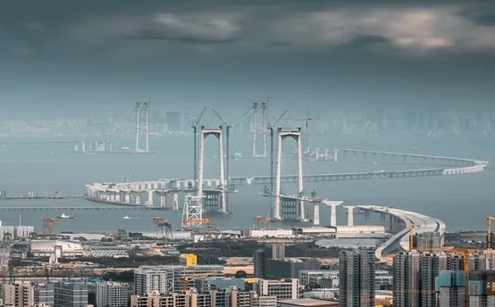 如今,放眼望去,在浩瀚的伶仃洋上,深中通道的橋梁宛如巨龍一般,在水面上蜿蜒出優(yōu)美弧線,兩邊海天一色,開闊而壯觀。76.5米的世界最高通航凈高,距離海面相當于26層樓的高度,可以容納兩艘上下疊置的泰坦尼克號通過。