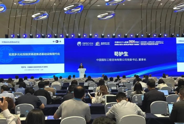 【編者按】2024年9月26日,中國國際工程咨詢有限公司(簡稱中咨公司)作為支持單位之一,在上海市金融辦、上海市發展改革委的指導下,會同瑞思不動產金融研究院、上海城投、中國建設銀行、中國房地產業協會、北京大學國家金融研究中心,在上海陸家嘴聯合舉辦了“中國REITs發展2024年會”,來自上海證券交易所、地方政府部門、資產原始權益人、金融機構、投資機構等單位的400多位嘉賓參加會議。中咨公司黨委書記、董事長茍護生,作了題為“拓寬多元化投融資渠道推進基礎設施現代化”主旨演講。