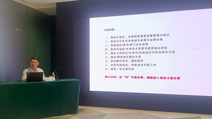 高質(zhì)量的文稿是智庫核心競爭力的直接體現(xiàn),是服務(wù)決策、彰顯價值的關(guān)鍵載體。9月11日上午,內(nèi)蒙古統(tǒng)一戰(zhàn)線智庫辦公室主任馮軒圍繞“高站位文稿寫作”進行專題授課,聚焦“站位、邏輯、表達”三大核心要素,輔之以典型案例講解,助力青年們提升文稿寫作的規(guī)范性與專業(yè)性,夯實決策服務(wù)的能力根基。
