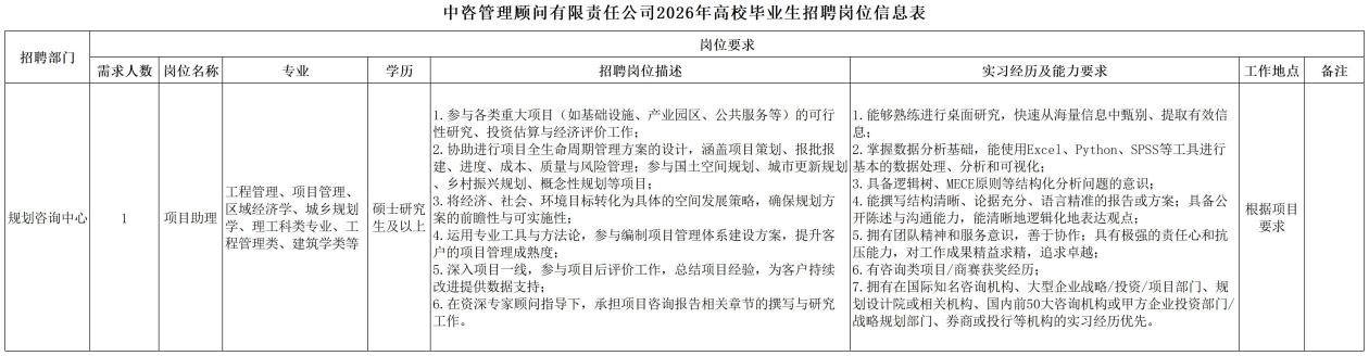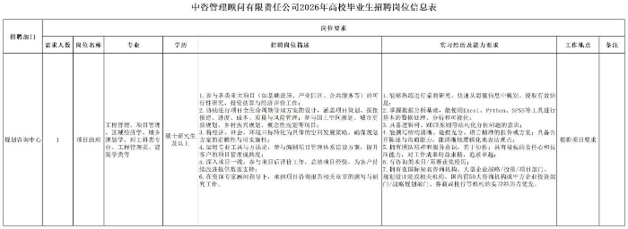 中國國際工程咨詢有限公司所屬企業(yè)2026年校園招聘公告 | ||||