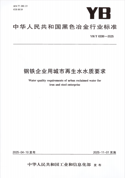 中國國際工程咨詢有限公司參與編制的行業(yè)標準YB/T 6338-2025《鋼鐵企業(yè)用城市再生水水質要求》于2025年11月1日正式實施。(參編人員:張建紅) 本標準由工業(yè)和信息化部鋼鐵行業(yè)節(jié)水標準化工作組提出并歸口。 本標準規(guī)定了作為鋼鐵企業(yè)工業(yè)用水的再生水的水質要求、監(jiān)測與檢測要求、其他要求。 本標準適用于以城市污水再生水為水源,作為鋼鐵企業(yè)工業(yè)用水的下列范圍:直流冷卻水、洗滌用水、敞開式循環(huán)冷卻水系統(tǒng)補充水、鍋爐補給水原水、工藝與產品用水。 |